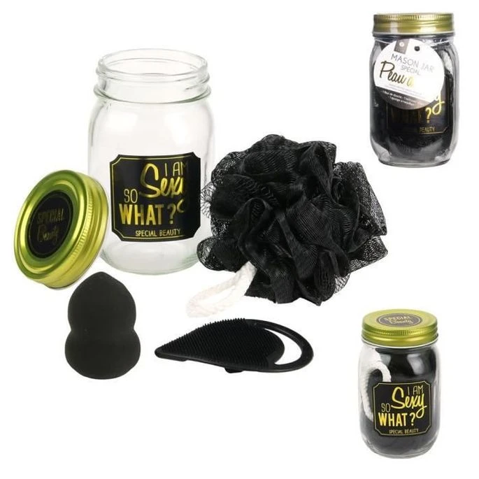 COSMETIC CLUB Coffret Nettoyage En Bocal Mason Jar Beauté – 3 Pieces – Noir