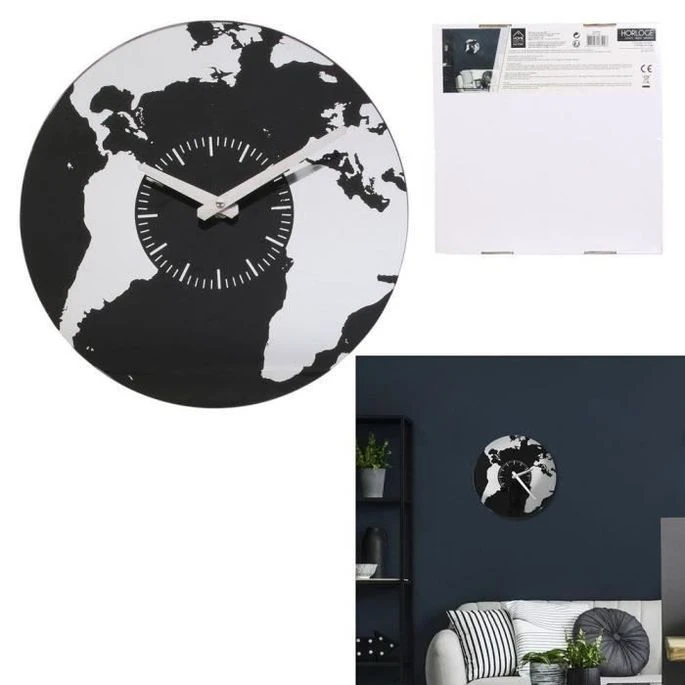 HOME DECO Factory Horloge Verre Mappemonde M6 HO2920