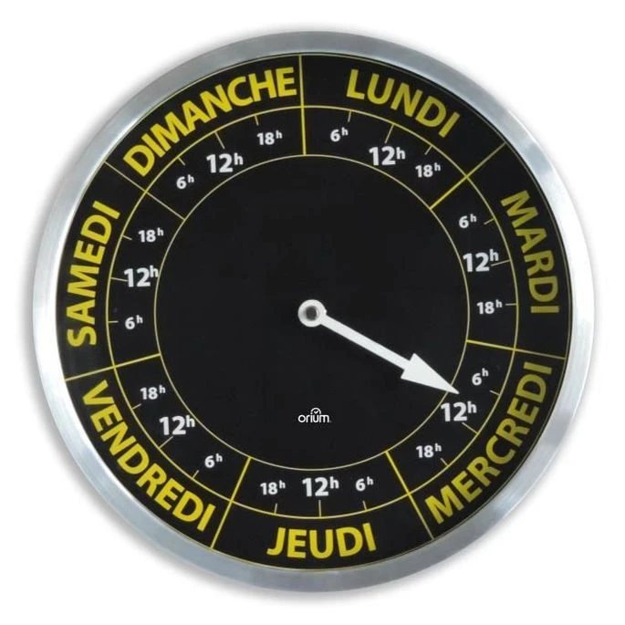 Horloge ORIUM Contraste Hebdo – Ø30 Cm – Repere Temporelle De La Semaine – Quartz Avec Mouvement Spécifique 7 Jours