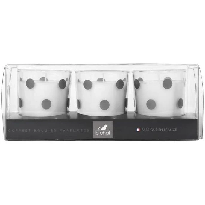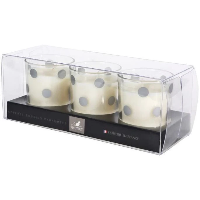 LE CHAT Coffret De 3 Bougies Parfumées – 19,5×7,5 Cm – Décors Pois Argent