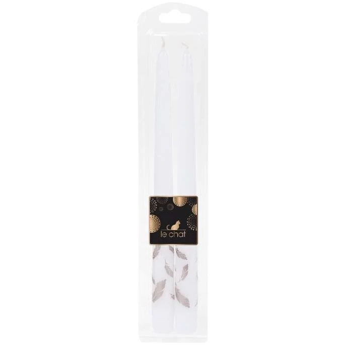 LE CHAT Lot De 2 Flambeaux Rhodos De Noël – H 29 Cm – Blanc Avec Sérigraphie Plume Rose Doré