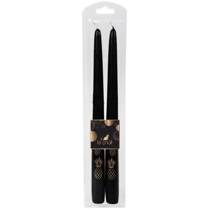 LE CHAT Lot De 2 Flambeaux Rhodos De Noël – H 29 Cm – Noir Avec Sérigraphie Ananas Or Chaud