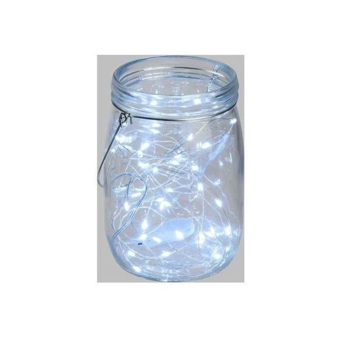 Pot En Verre Ø15,5 Cm Avec Guirlande De 40 MicroLED Lumiere Fixe Blanc Froid