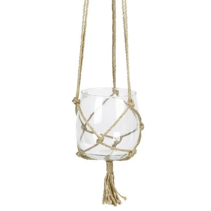 Suspension Boule En Verre A Suspendre – Avec Corde En Chanvre – Ø 15 Cm – Blanc Transparent