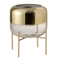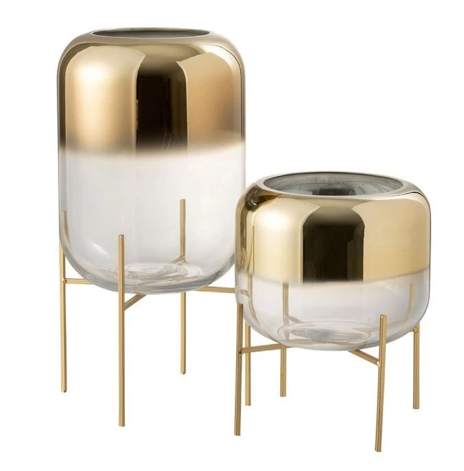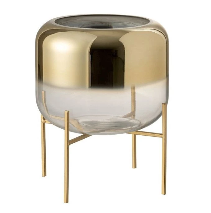Vase Transparent Et Pieds Métal Doré Narsh H 24 Cm
